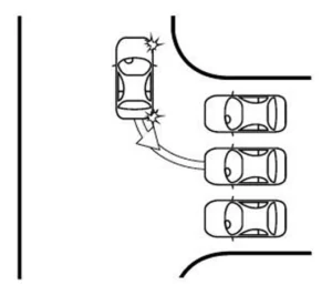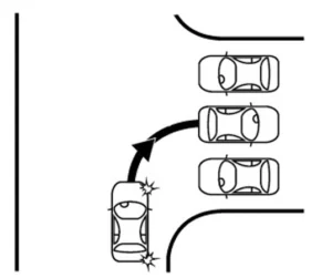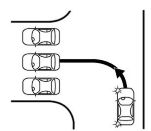 - egyet az előremenetben történő a 90º-os parkolási manőverek feladatai közül (Manőverek 1–2),
